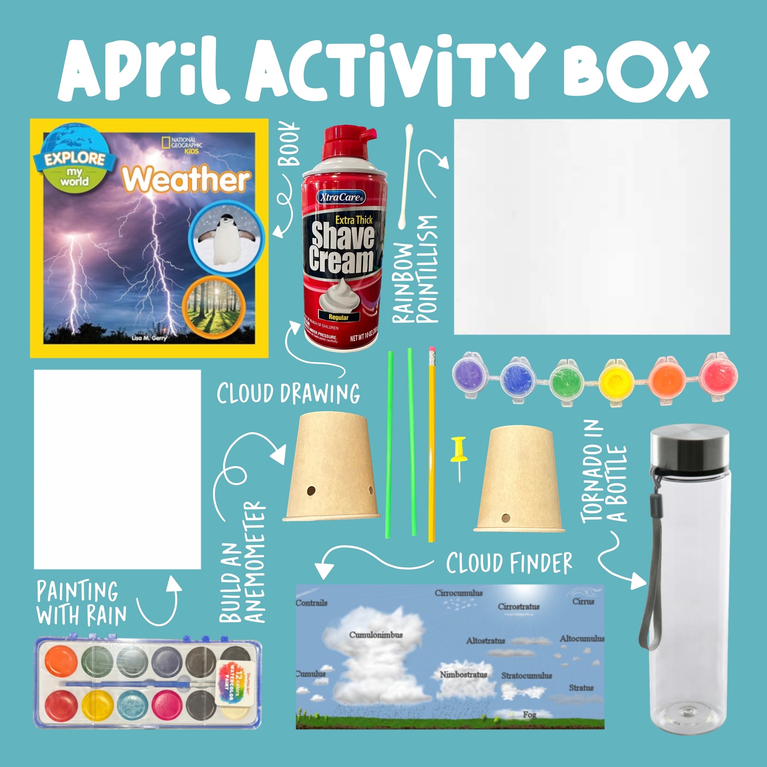 Each box contains the needed materials to complete each activity, as well as ideas to keep the fun going.