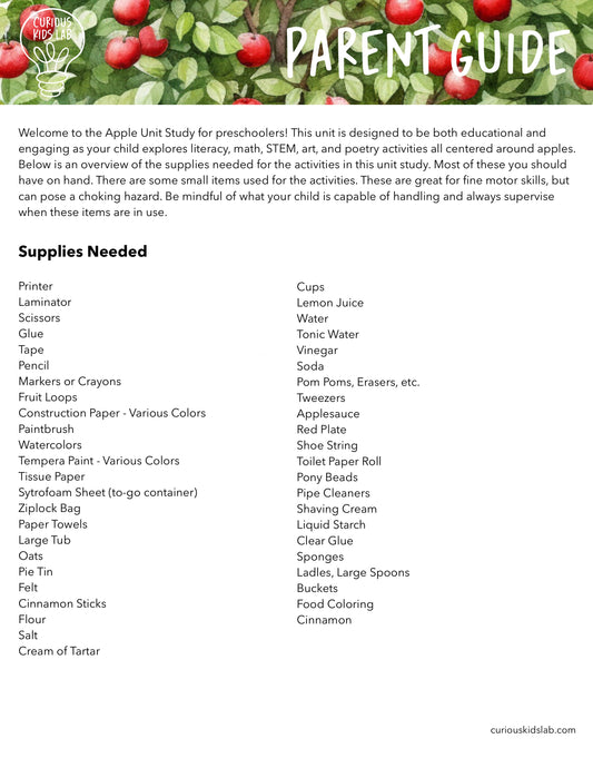 Apple Preschool Curriculum - Instant Download